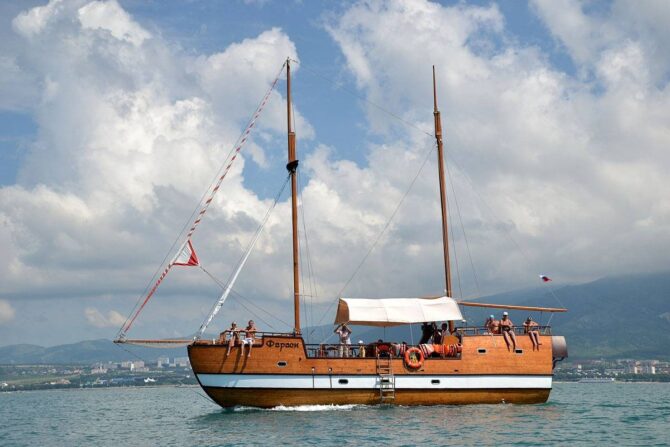 - boat trips on the ship “Pharaoh” or yacht “Atlanta” in the waters of the spacious Gelendzhik Bay;