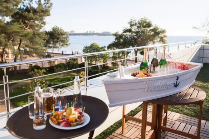 Meals in the hotel “Gelendzhik-Park” is organized according to the “catering” system. Guests choose dishes from the menu of the resort’s restaurants, which have proven themselves best. Food and drinks are delivered to the hotel for breakfast. Table setting can be organized in the room or on the terrace, depending on the time of year and the preferences of the guests ofGelendzhik Park. During the day, vacationers can eat in the restaurants and cafes of the resort, located near the hotel: