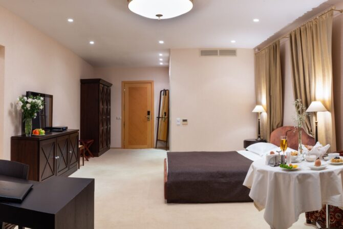 Pay attention! The table shows the cost of rooms in the hotel “Gelendzhik-Park” for March [y] for two guests to stay for one day. In August and July, prices rise by 62-64%. Breakfast, access to the spa area and indoor pool – all this is included in the room rate.