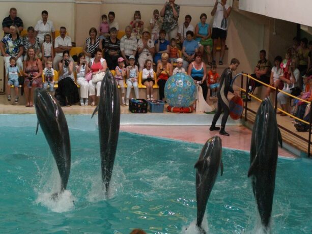 - dolphinarium, attracting fans of fun performances with bottlenose dolphins, beluga whales, walruses and fur seals;