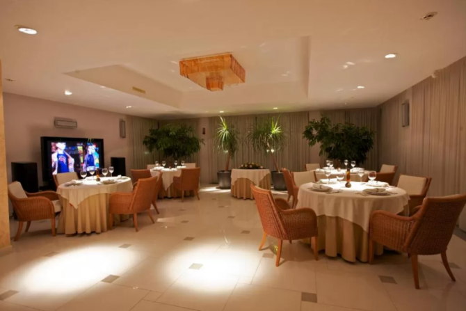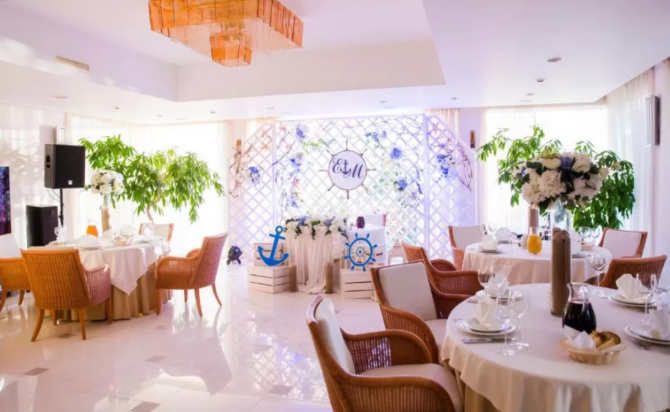Guests of the hotel bar can sit at tables in soft armchairs. The decoration of the spacious hall is a large black grand piano. In the evenings, live music is often played here. Wine list and bar menu offer a wide range of drinks:
