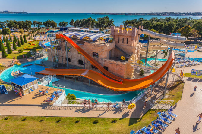 - “Golden Bay” is a giant water park occupying an area of 15 hectares; visitors here are waiting for entertainment on 10 attractions and 49 water slides;