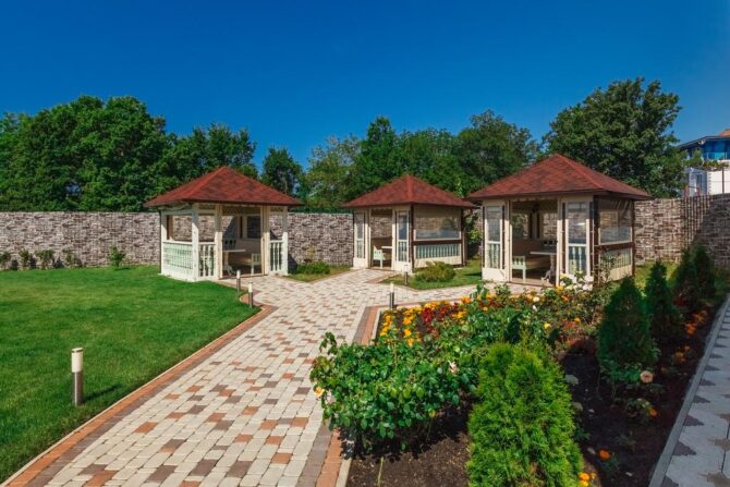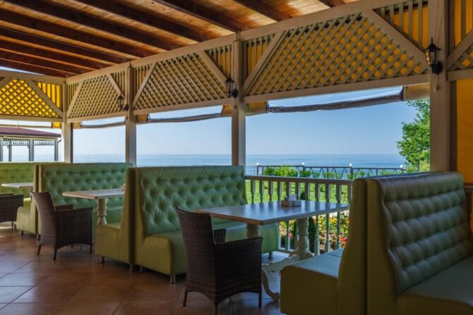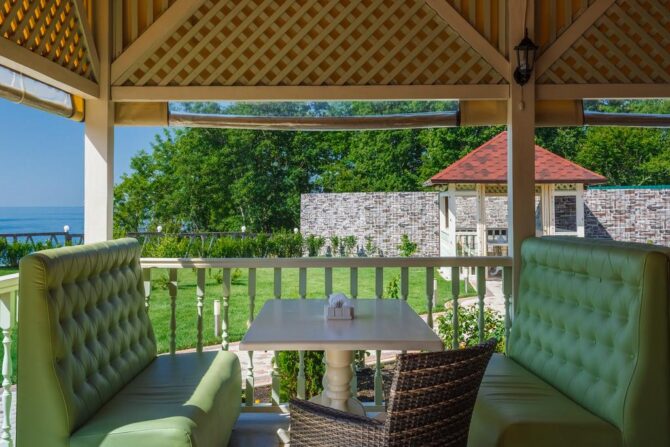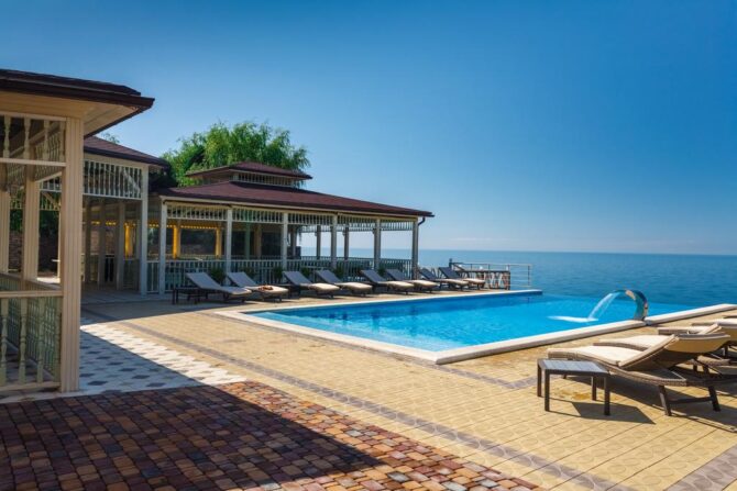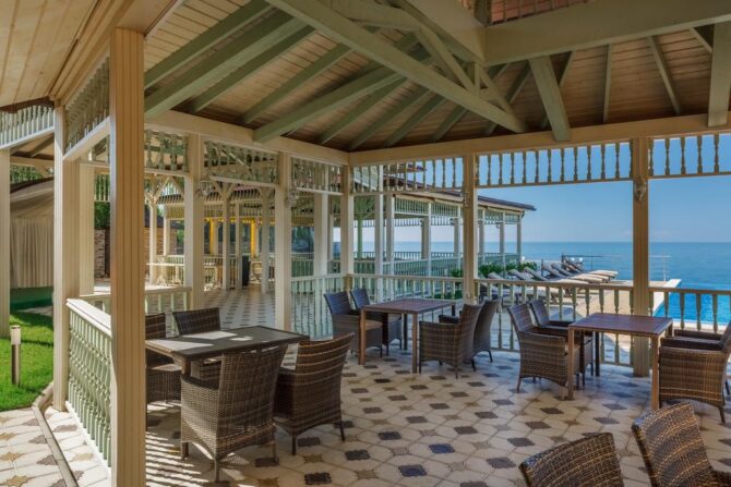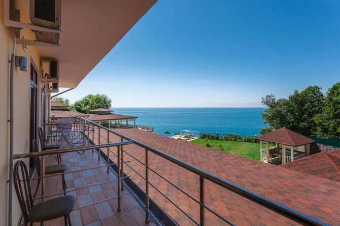 A small two-storey modern building of the complex was built in the style of a country villa. The building was erected on a small hill, so it offers a magnificent view of the Black Sea Riviera.