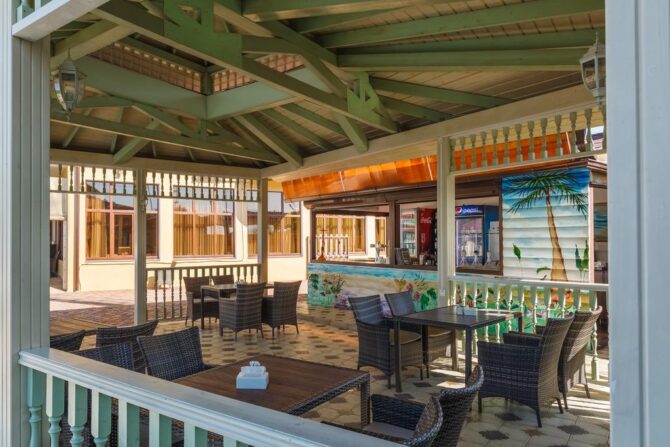 Restaurant and hotel complex “Grand Paradise” opened in 2014. Translated from English, the name of the hotel means “Big Paradise”. And indeed, there are all conditions for a paradise holiday.