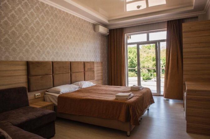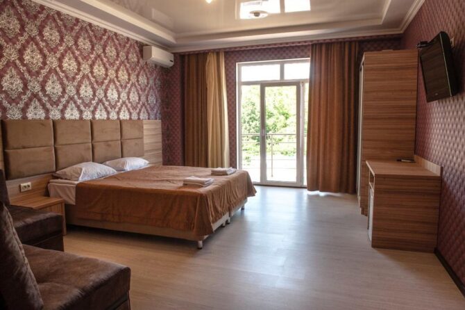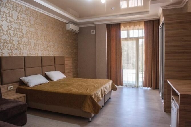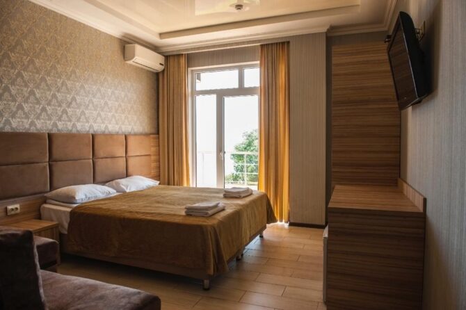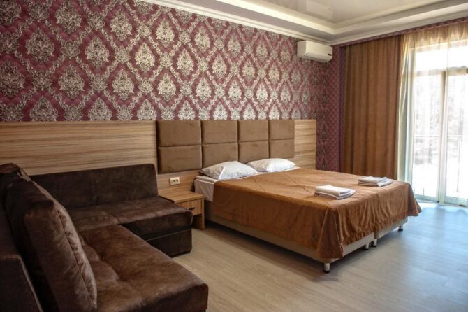 A cozy small hotel offers 13 comfortable superior rooms with a capacity of up to four people. Each room is decorated in a classic style and is equipped with air conditioning, flat-screen TV, bathroom with hairdryer, toiletries and modern plumbing. Views of the mountains, pool or sea.