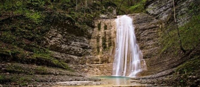 If you go in the direction of Arkhipo-Osipovka, you can see seven more waterfalls. The water in them is enriched with silver, bathing in such water is good for health. The water is clear and very clean, but quite cold. Swimming is safe, because at the foot of the waterfalls formed convenient for swimming natural reservoirs. The most famous of these waterfalls is called “Cord”.