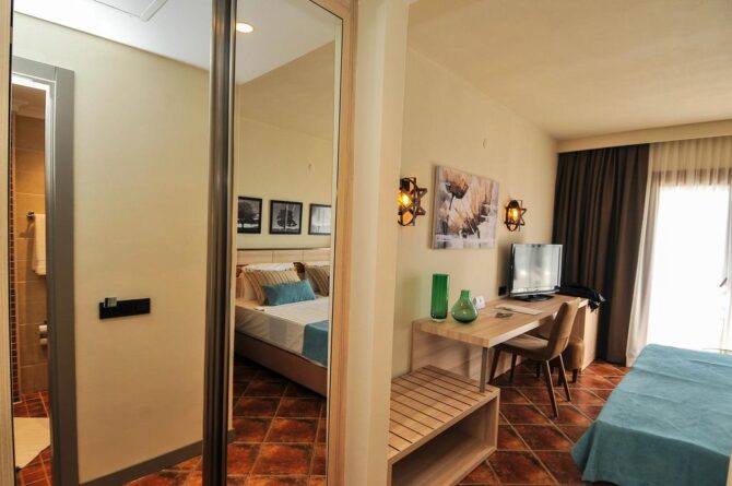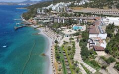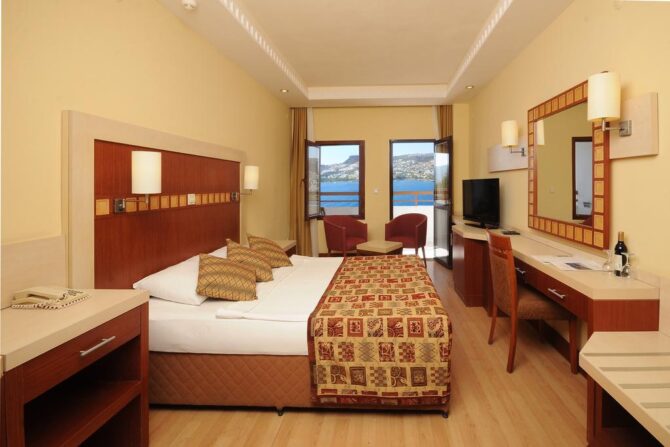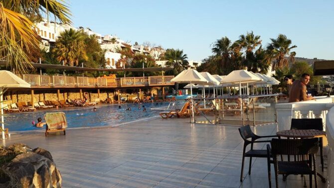 Holidays on the system all inclusive, perfectly implemented in Turkey. In particular, the resorts of Bodrum are in a leading position in popularity among tourists. When considering an inexpensive, but interesting option for recreation, I liked the Green Beach Resort – a hotel that stands apart in relation to the nearby resorts, if only because of its huge size.