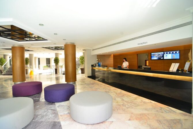 The central building is quite old, but after reconstruction. It can be attributed to the category 4+. The reception is large, so even the two large tourist buses that have just arrived with guests in the lobby do not cause a feeling of “crowd” in a small building. I really liked the fast and competent work of the staff, who almost at the speed of an agile huckster “disassemble” visitors.