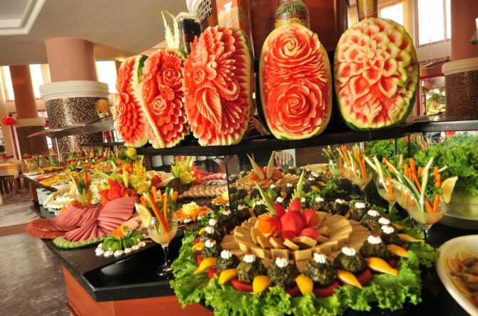 There is a lot of food and it is diverse. Since the hotel is focused on the European tourist, there is no excessive national flavor in the food. You can divide the entire diet into three meals: morning, lunch, evening. In the morning you will find a large number of cheeses and sausage cuts (for an amateur because of the high content of soybeans), stewed sausages, boiled eggs. Also always in a large assortment of vegetables (cucumbers, tomatoes, peppers, salads). Ready-made salads with olive oil or sauces. There are always fresh pastries: bread, buns. Complement them will help a variety of jam, butter, “nutella” From hot drinks tea, coffee. Not far from the dining room with a restaurant there is a “lounge area” with coffee, hookahs and other exotics. It is available from morning to evening.