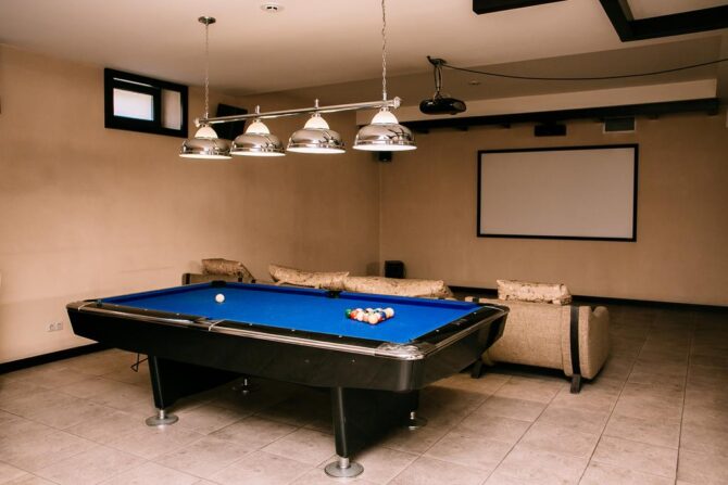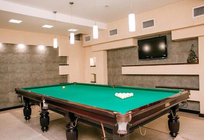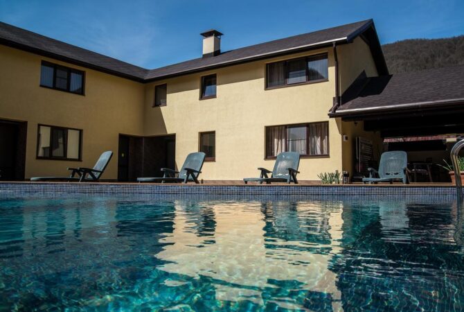 After an intense day’s leisure, we recommend using the steam bath with steam room and relaxation area, enjoying a relaxing massage and spa treatment or taking a dip in the outdoor pool. After the bath, you can spend the rest of the evening playing billiards or in the area with a movie projector.