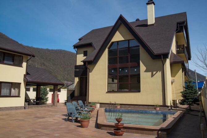 The hotel looks like an Alpine chalet. But the interior of the hall, the café is made in accordance with modern requests. The hotel occupies a small 4-storey building with 22 spacious rooms of different capacity and format: studio, standard and apartments. The rooms have balconies, and each room offers a fantastic view of the surroundings and the majestic peaks of the Caucasus Mountains. The rooms are equipped to make guests feel comfortable and cozy.
