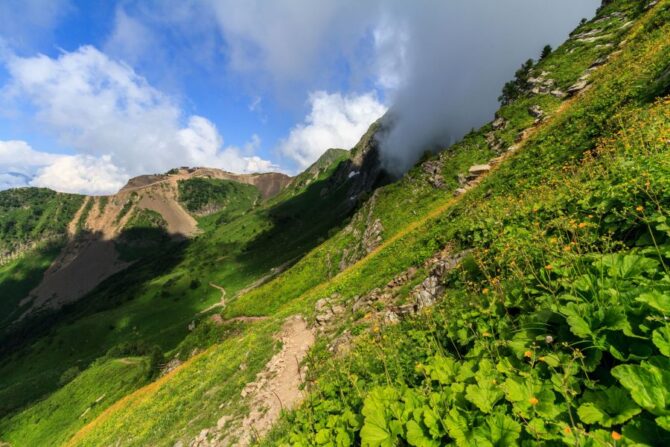 In the warmer season, take a walk along one of the 19 eco-trails. Their total length is 40 km. Do not be alarmed, all the trails are different with different levels of difficulty. You will be able to choose the most suitable route. There is an opportunity to make your walk even more exciting and safe by going on a hiking trip accompanied by a local guide. He will help you take stunning photos, suggesting the best place for a photo against the background of mountain peaks will show you local lakes and waterfalls, show unusual animals and plants. The singing of birds, the murmur of water, the smell of needles and fresh air – you will not want to go back.