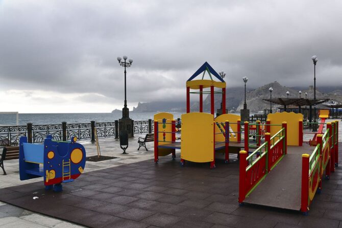 In Sudak there are two places where both adults and children are happy to have fun. Aquapark “Water World” is considered one of the best in the Crimea. On its territory there are slides, including 4 of them are intended only for adults. The children’s complex includes a water town and swimming pools. In the middle there is a recreation area “Green Island”. In total, the water park has 6 different swimming pools, several water slide complexes, a restaurant, a café and a place for water discos.