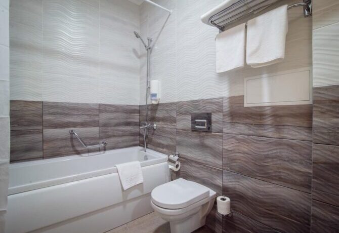 - Standard (36-42 sq. m) with a capacity of 1 to 3 people. The bath is equipped with handrails for the convenience of people with disabilities. A sliding sofa can be used as an extra bed. There is a telephone for internal communication.