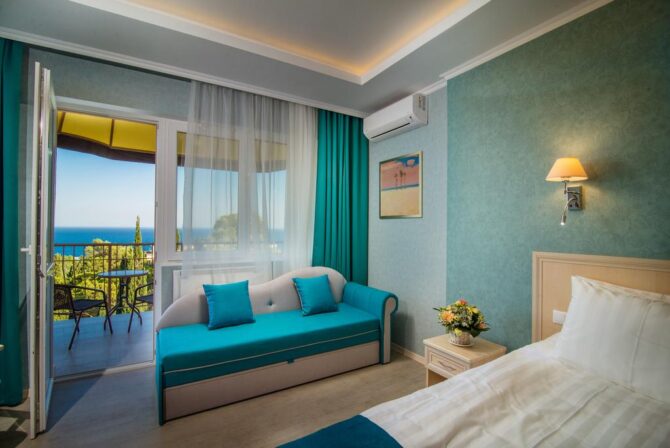 “We lived in a standard room with my wife and two children. Everyone was accommodated without problems. The room is clean, the bed linen was made on both the bed and the sofa. Daily cleaning was provided. Equipment and plumbing are not cheap, from well-known manufacturers. The staff is friendly. When we lost the electronic key to the room, we were given a spare, without asking unnecessary questions and without moralizing. Loved the big balcony. It has a table and wicker chairs. We ordered a full ration according to the Swedish system. The menu is not too diverse. The food is fresh, just cooked, a lot of fruits, vegetables. Not much baking, but we had enough. In my opinion, these are the best option for a holiday with the family in Yalta” Evgeny, Russia