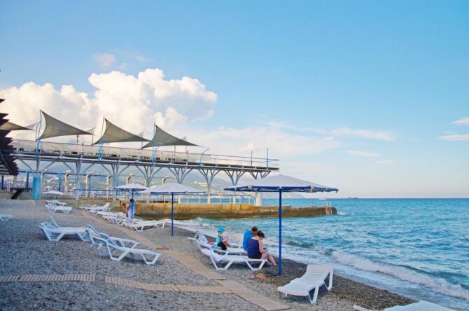 The nearest airport is Simferopol Airport, 110 km from the property. Transport links have been established between the two Crimean capitals. You can take a bus to the bus station of Yalta, then change to a taxi number 11, 35 and drive to the stop “Sanatorium “Russia”. Then walk a little. Previously, you could go to the territory of the sanatorium to walk in the park or sit in a restaurant. Now access to outsiders is prohibited.