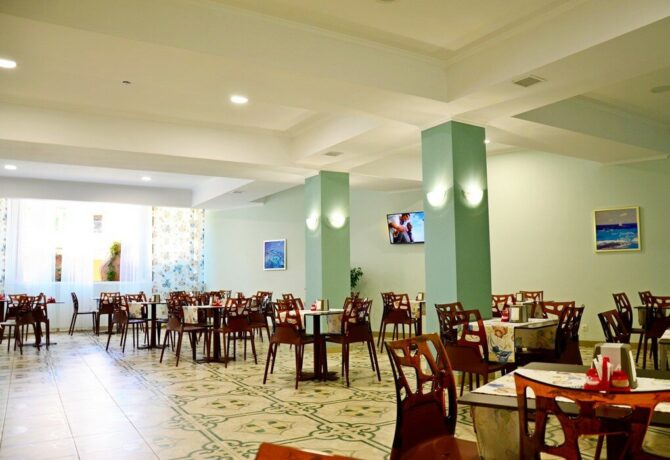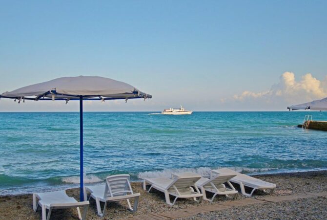 The hotel has a contract with the beach “Dolphin”. Every hour there are buses. The territory of the beach is famous for its cleanliness and convenient entrance to the water. Coating – pebbles. It is recommended to bring beach shoes. Infrastructure and service are thought out to the smallest detail. There is a rescue and medical centers, there is a rental of sun loungers, umbrellas, water play equipment. Equipped volleyball court, table tennis, billiards. There is an opportunity to play badminton.