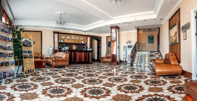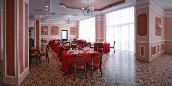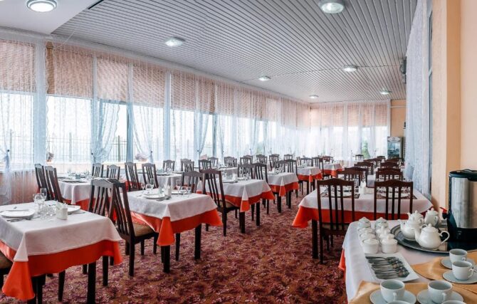 The reception at the hotel is open around the clock. The service provides services for the delivery of food and drinks to the rooms, ordering railway and air tickets, installing equipment for conferences and business meetings, organizing and holding banquets, weddings, solemn events.
