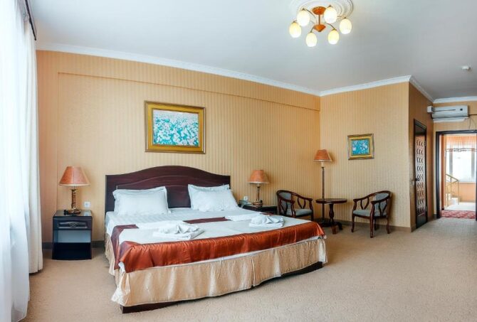 All rooms have air conditioning, mini-bars, safes, bathroom equipped with bathrobes, slippers, cosmetics sets. On the floors there are coolers with drinking water (cold and hot).