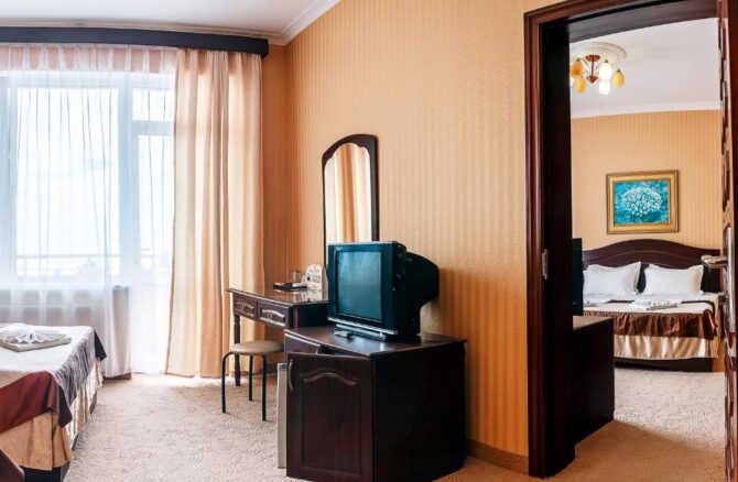 The hotel fund has 55 rooms of five levels of comfort. The price includes accommodation, meals (3 packages are available to choose from), use of the beach, swimming pool, children’s play areas, gym, entertainment activities with the participation of animators, parking, Internet (Wi-Fi). The residential building consists of seven floors. There is a lift.