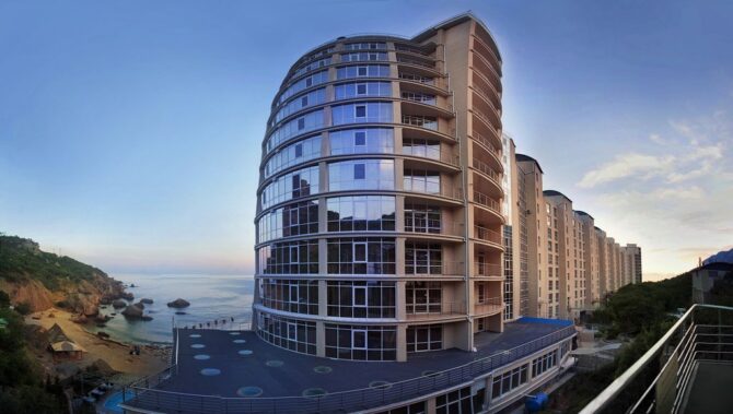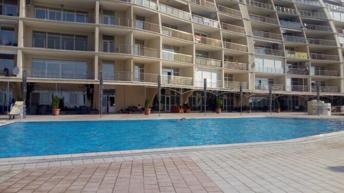 Eugene writes a review: “was not in the “guest”, but in the LCD itself. Here are nice large apartments with steep views of the sea, mountains and swimming pool with courts. Good infrastructure, though a little original. Parking under the whole complex is made in the form of catacombs with shops where you can buy fresh fish with mussels, as in some market in Asia. In general, a cool place with its own atmosphere, which undoubtedly wants to visit again!”