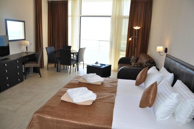 Vdovikov Andrey writes a review: “there were 2 days in winter. The location is great, Laspi is something! The rooms are spacious, from useful – refrigerator, dryer, kettle. Friendly staff. Buffet three stars. If you approach 9, then all the interesting things will already be eaten. Arrive by 8 a.m. Everywhere you need to carry a pass card, as on a regime object. In general, I recommend, for its price a great option. “