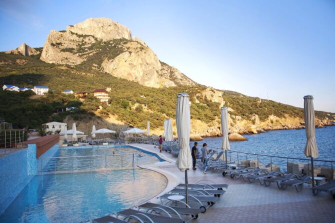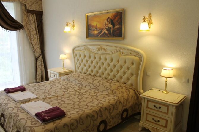 Lilu writes a review: “The hotel is not for the demanding. I liked the big rooms, the private promenade, the oyster farm on site. Also a cool pontoon right in the sea for lovers of diving, friendly staff and hearty breakfasts. By car we went to Yalta and Sevastopol. And what a pool here, oh, my children lived in it all day.”
