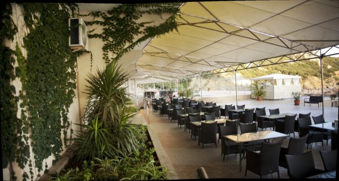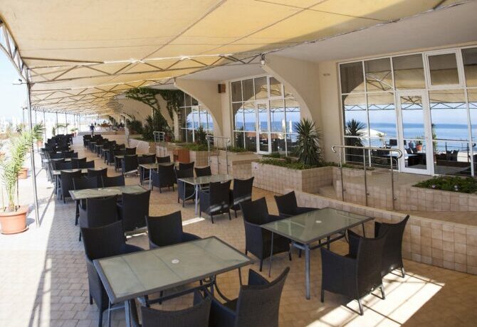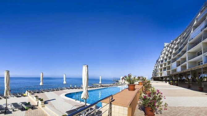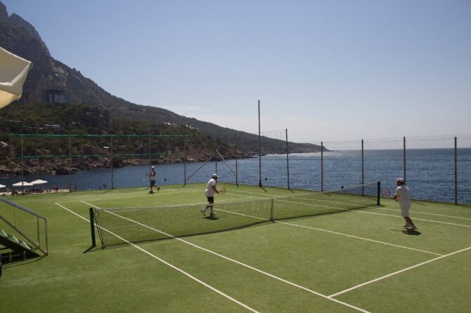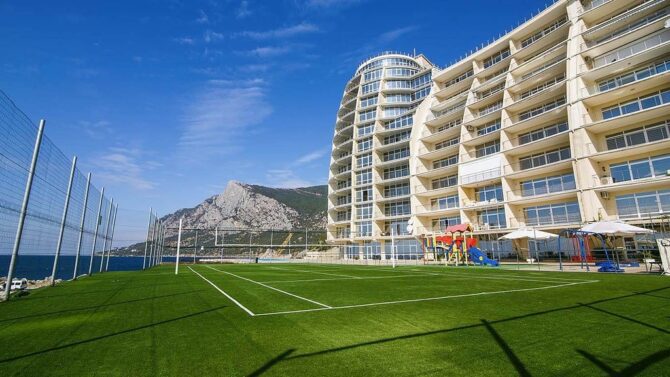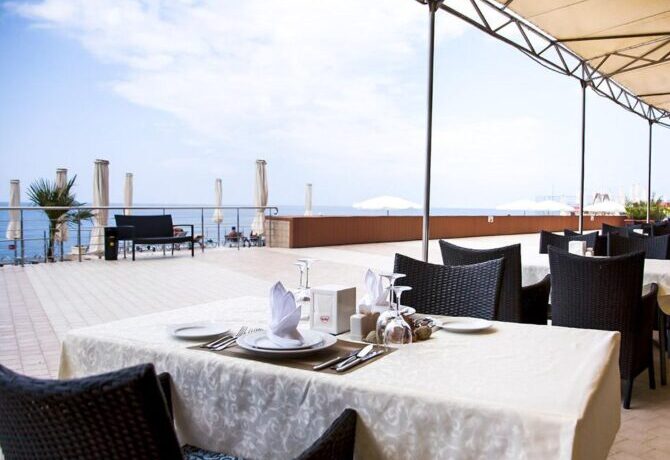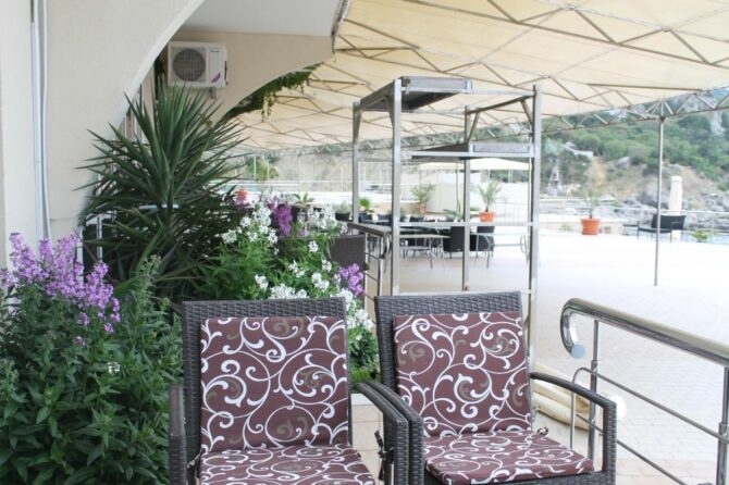 Active recreation is represented here by tennis courts, mini-football, gym and walks in the mountains. The price of the voucher includes only a visit to the gym with a large number of treadmreadmacks and other mechanisms useful for the body. You can take a stroll through the hotel’s beautiful garden. It is good to climb the surrounding mountains, from where picturesque views of the sea open.