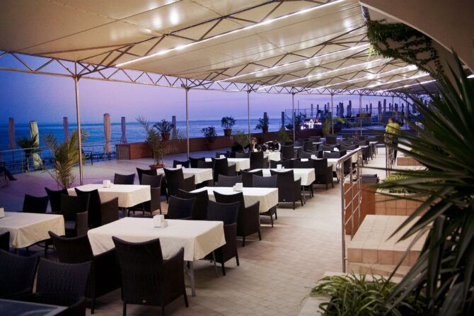 “Rosemary” is a lounge café next to the pool. The average score is 700-2000r per person, which is also not cheap. But the high prices are partly compensated by the delicate taste of fresh seafood cooked in the skillful hands of the chef.
