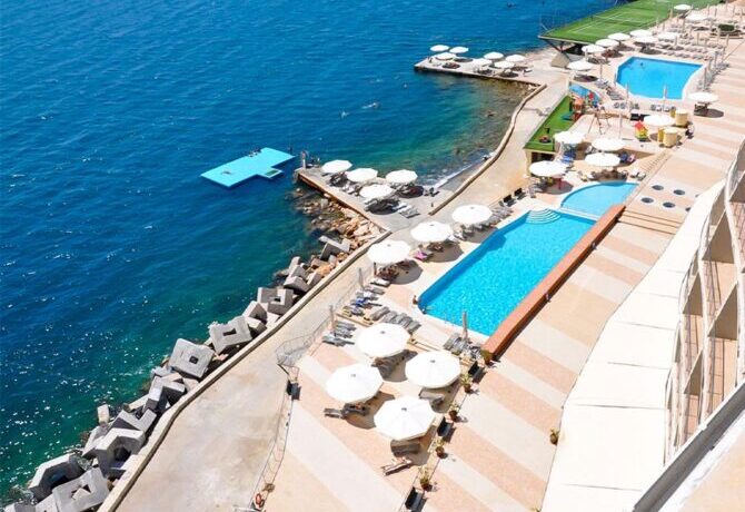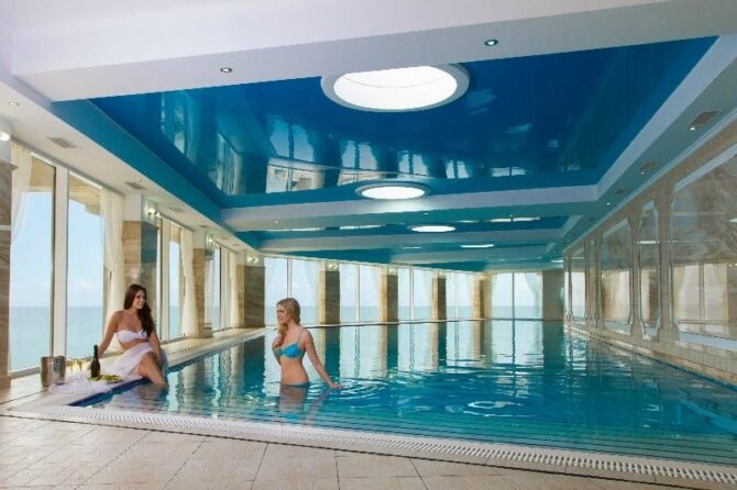 The spa is quite extensive and provides many interesting services, but for the most part for the addition. Fee. Only the swimming pools, Finnish sauna and Roman bath are included in the rate. Other services are paid, including and hammam. Three swimming pools: one with sea, the other with fresh water and a smaller children’s pool.