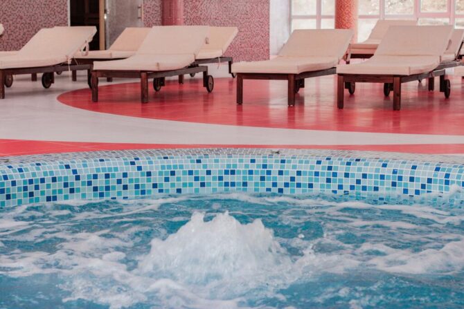The indoor pool is smaller, equipped with a hydromassage function and is located in the spa area. Here you will relax in any weather and time of year.