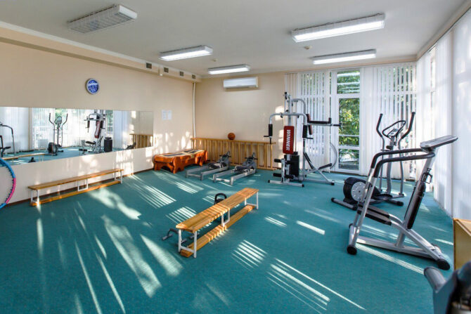 The huge territory is perfectly equipped with sports grounds of various orientations: a tennis court and tables for ping – pong, volleyball and basketball fields. There is a bicycle rental, billiards, gym, yoga and aerobics courts. Outside the territory there are trails for lovers of hiking trails.