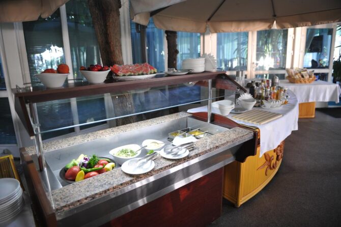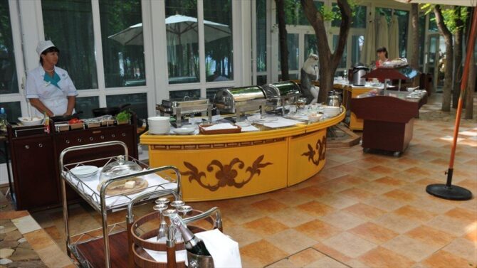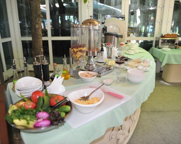 Breakfast in the residence “Elm Grove” causes the warmest memories even among those who write negative reviews. Serve tables in the clearing among green elms, where it is very beautiful and atmospheric. The variety of the Swedish line is liked by vacationers: several types of hot, fruits, vegetables, meat cuts. There are canapés with red caviar, salted fish, jamon, local cheeses and other delicacies. From drinks it is possible to allocate fresh fruit fresh and grain coffee. In short, reading reviews about the hotel, you meet only positive assessments of the quality of breakfast.