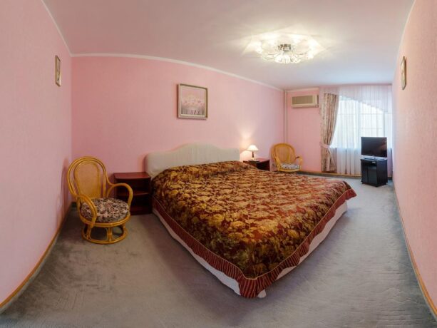 Andrew Gl writes a review: “Not a bad hotel. We rented a room – spacious, bright, beautiful and a little tired of time, but the hand does not rise badly to write. The beach is also good, sun beds are included in the room rate. Parking is there, but under the scorching sun. We ordered tapak chickens in the restaurant, brought carcasses by a kilogram – they could not eat. Staff and service for four, not VIP-service. The staff is entirely local. Without a personal car, it’s hard here – no shops, no entertainment. Everything is in Sevastopol.”