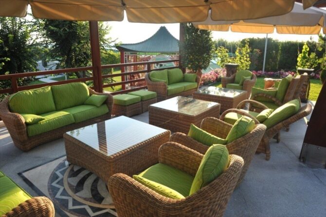 The gym has a large volume of space, panoramic windows, air conditioning and a seating area. Modern sports equipment and simulators are installed. Around the beautiful views of the green spaces and decorations of the hotel. It’s nice to play sports here.