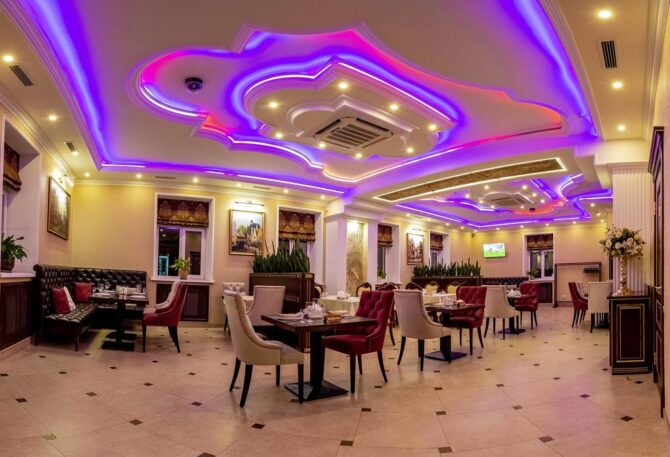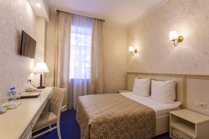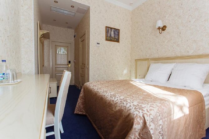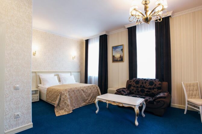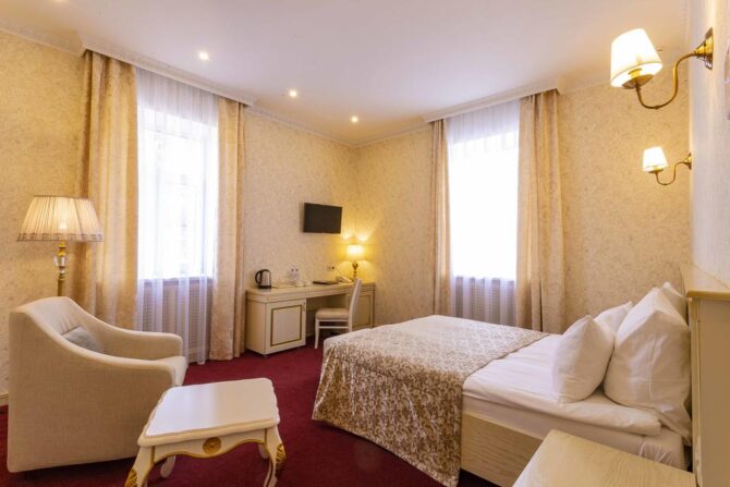 Boutique hotel “Golden Plaza” rightfully belongs to the category of 4 stars. Guests of Tver are guaranteed comfortable accommodation in cozy rooms, restaurant services, rest in the bath complex, relaxing wellness procedures in the pool. There is little reminiscent of traditional hotels. Even the hall with an administrative counter is decorated as an entrance hall-living room of a private estate. This place is chosen by people who want to get a good night’s sleep and are accustomed to excellent service. Friendly staff with attention to the requests of guests and is ready to carry out their instructions at any time of the day.