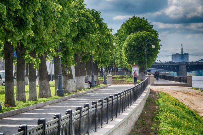 The embankment of Mikhail Yaroslavich is the most beautiful place in Tver for rest and walks. It is a two-level promenade with well-groomed paths. It is adjacent to the oldest natural object – the City Garden. As attractions, it is famous for its sculptures. Here you can find a statue of the Fisherman at the parapet, “Two Deer”, “Malvina and Pierrot”, a forest rogue “Fox”. On the territory there are: