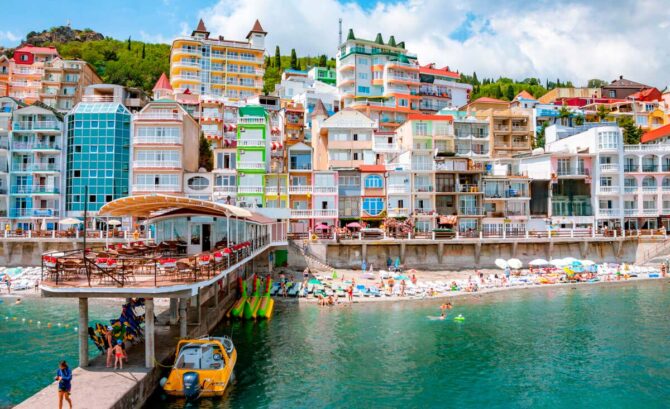 The distance to the center of Alushta is 12 km, to Yalta – 20 km. From the village regularly run buses and minibuses, you can get to the interesting settlement of the Southern coast of Crimea by boats and “Meteora”.