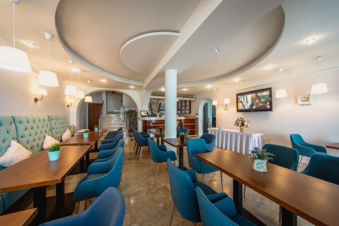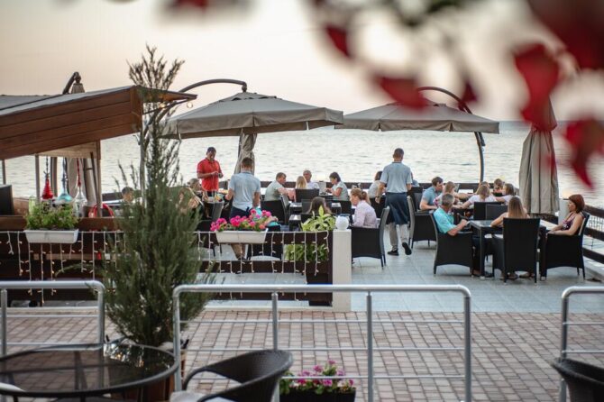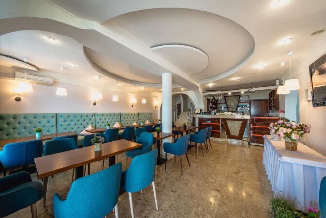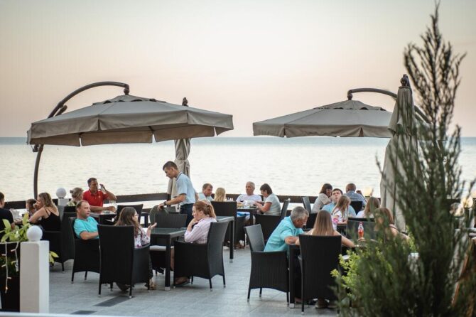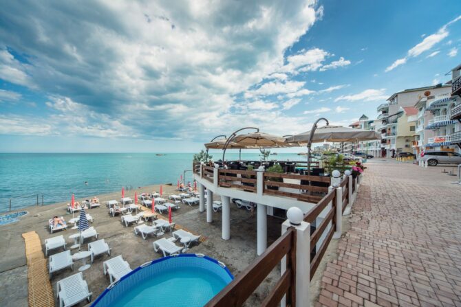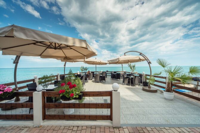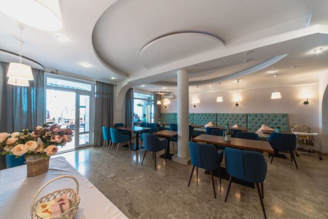 The main restaurant, headed by the chef, takes care of the catering of the hotel guests. Breakfast is already included in the price. It is served through a buffet system. At lunchtime, visitors are waiting for delicious offers from the Chef in the form of a business lunch. In the evening, the kitchen prepares an à la carte menu. Several of them have been developed, including the main European, children’s, fish, grill and vegetarian. Tables are set on the outdoor terrace overlooking the sea. There is also a bar counter.