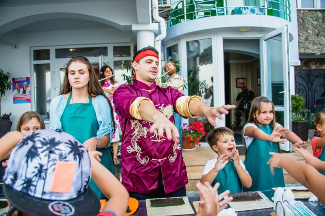 The hotel accepts children of all ages. A child under 3 years old can stay with his parents free of charge if he does not need a separate bed and meals. He can eat with his parents on the package they purchased with breakfast included. Baby cots are available for hire and high chairs are available in the dining room. A children’s menu has been developed for young gourmets. Every day young guests come to entertain cheerful animators. They conduct game programs and exciting quests.