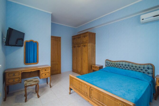Hotel rooms are located in both buildings. The fund has 31 rooms for 70 beds. All of them are quite spacious, equipped with air conditioning, it is possible to install extra beds. A special feature is the presence of large balconies where you can relax with the whole family and admire the sea sunsets or a beautiful view of the park. A pleasant innovation was the use of orthopedic mattresses and elite bed linen made of natural textiles.