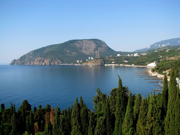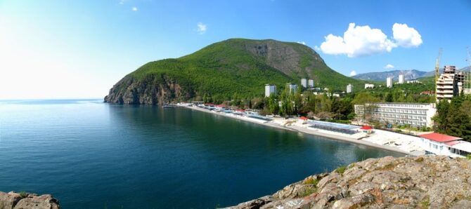 - Ayu-Dag (Bear Mountain). This is a mountain range in the south-eastern part of the Crimean Peninsula, on the territory of Greater Yalta. It is located north-west of the village of Gurzuf on the southern coast of Crimea. The Ayu-Dag mountain range stretches in the form of a triangle stretched from north to south for 8 kilometers with a width of 5 kilometers. This is one of the main natural attractions of the Southern coast of Crimea. Translated from Turkish, the name “Ayu-Dag” means “Bear-mountain”. According to legend, Mount Ayu-Dag was named after a bear that lived in the mountains. According to another version, the mountain was called “Bear” because it looks like a huge head of this animal.