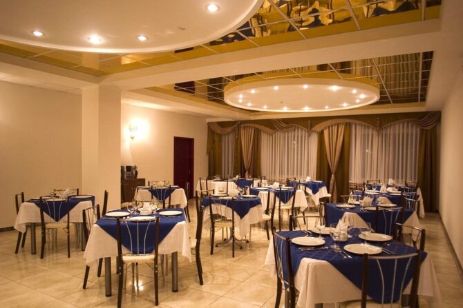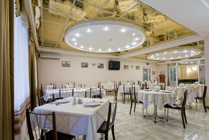 The restaurant of the hotel “Nord” offers several options for service: breakfast, full board, as well as dishes from the restaurant’s menu. Breakfast – buffet. Lunch and dinner – with individual serving. Ordering à la carte meals is subject to availability. Room service is also available.