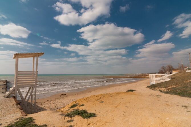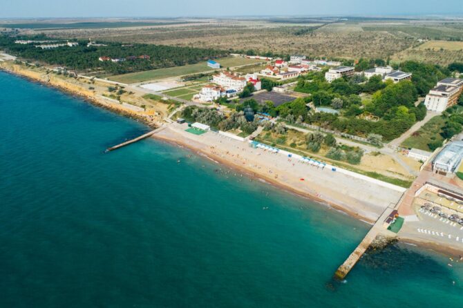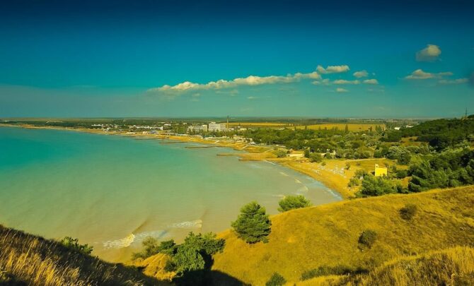 Steppe and sea air create a mild microclimate when it is not too hot or windy. The village, unlike the surrounding area, is rich in a variety of trees and shrubs. The air is saturated with a pleasant aroma of steppe grasses and the sea.
