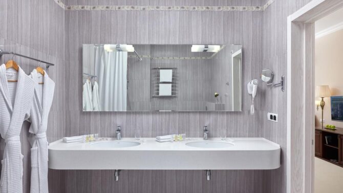All rooms are equipped with two single beds or one double bed or two single beds, a sofa chair or a sofa bed. VIP-suite occupies two levels – 3 and 4 floors of the hotel “Prevysokov”. The family suite includes two rooms: a spacious living room and a cozy sleeping area. The rooms of the hotel “Prevysokov” have everything you need for a comfortable stay of guests:
