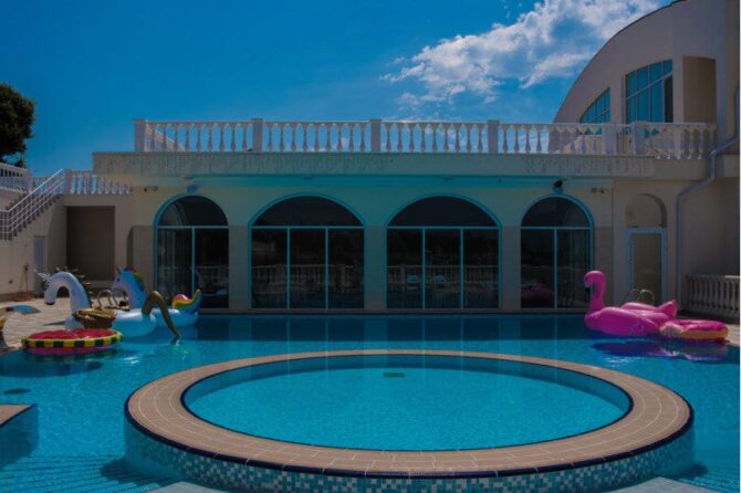 Among the vacationers there are always fans of comfortable swimming in the pools. They will be satisfied with the opportunities that open before them in the hotel “Prevysokov”. The hotel is equipped with three swimming pools (the depth in meters is indicated in parentheses):