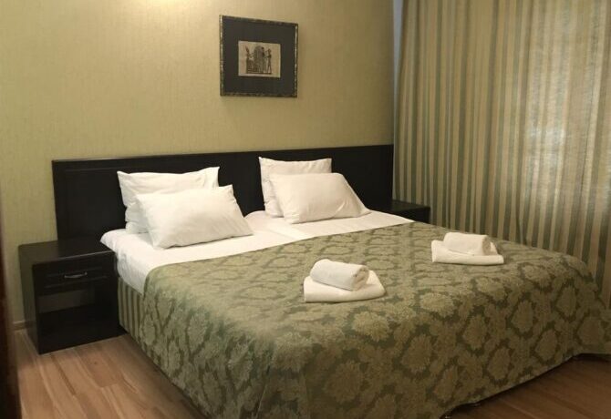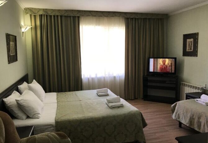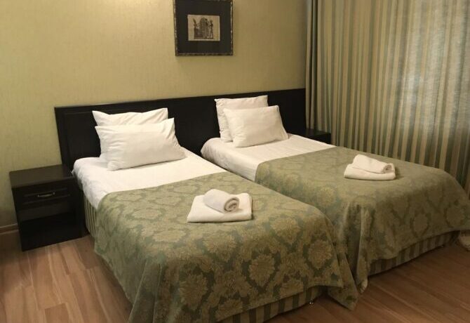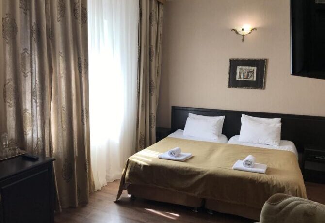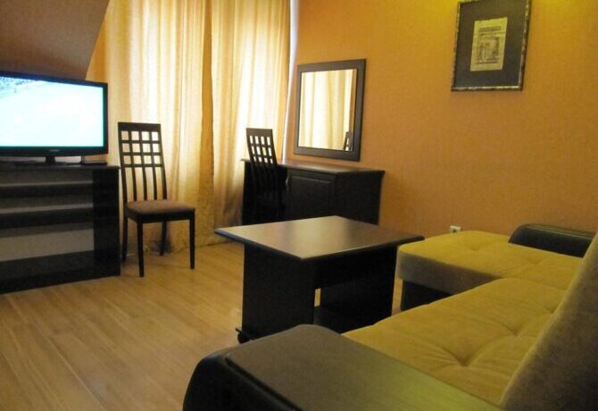 The hotel is chosen because of its good location and reasonable prices for accommodation. In the complex there are 2 three-storey cottages, designed for 31 rooms. In the room of any category can be put an extra bed (euro-folding). Each has a refrigerator, TV, kettle. To the choice of guests there are rooms of 4 levels of comfort: