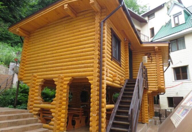 Cultural and ethnographic center “My Russia” is located on the banks of the Mzymta. Here are collected elements of the culture of all nationalities inhabiting the country. On the territory of the park there are workshops in which artisans teach their craft to all comers. The café prepares food according to the national recipes of the peoples of Russia. Here you can order Siberian dumplings or rich soup according to the recipe of the peoples of Povolozhye.