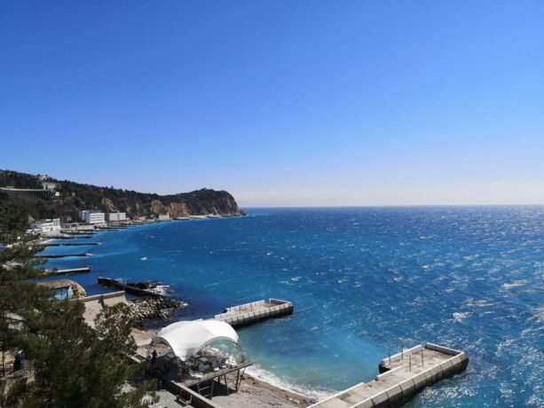 In the “Pine Grove” in Yalta there is a beach equipped with a rescue station and a first-aid post. On the shore there are changing rooms and showers. The beach staff installs sunbeds and umbrellas in one of the five zones for each vacationer.