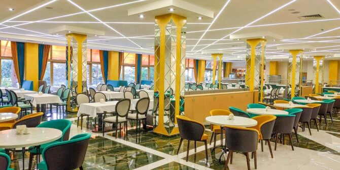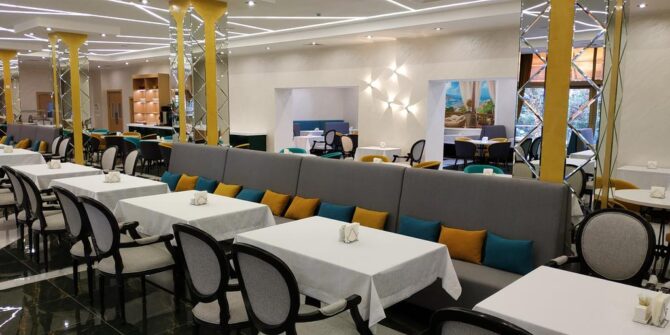 The hotel “Pine Grove” offers meals on the “All inclusive” system. You can try different dishes every day or opt only at the buffet. Some restaurants are not included in the full board price. In this case, you can pay for a visit to them additionally.